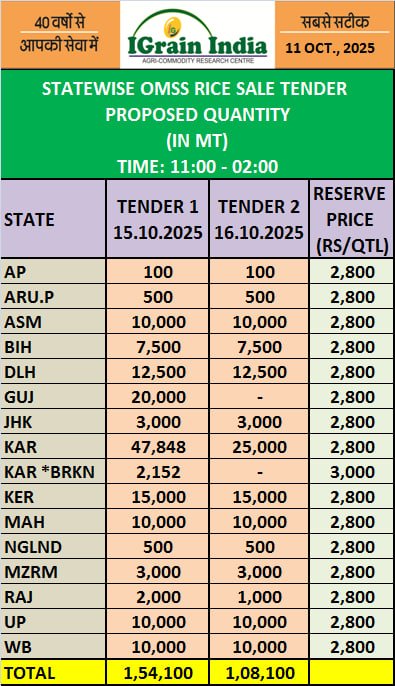 STATEWISE OMSS RICE SALE TENDER PROPOSED QUANTITY