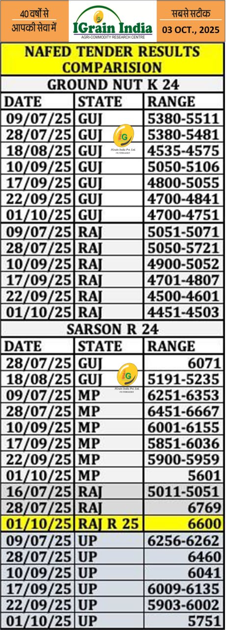 NAFED OILSEED TENDER RESULT CHART