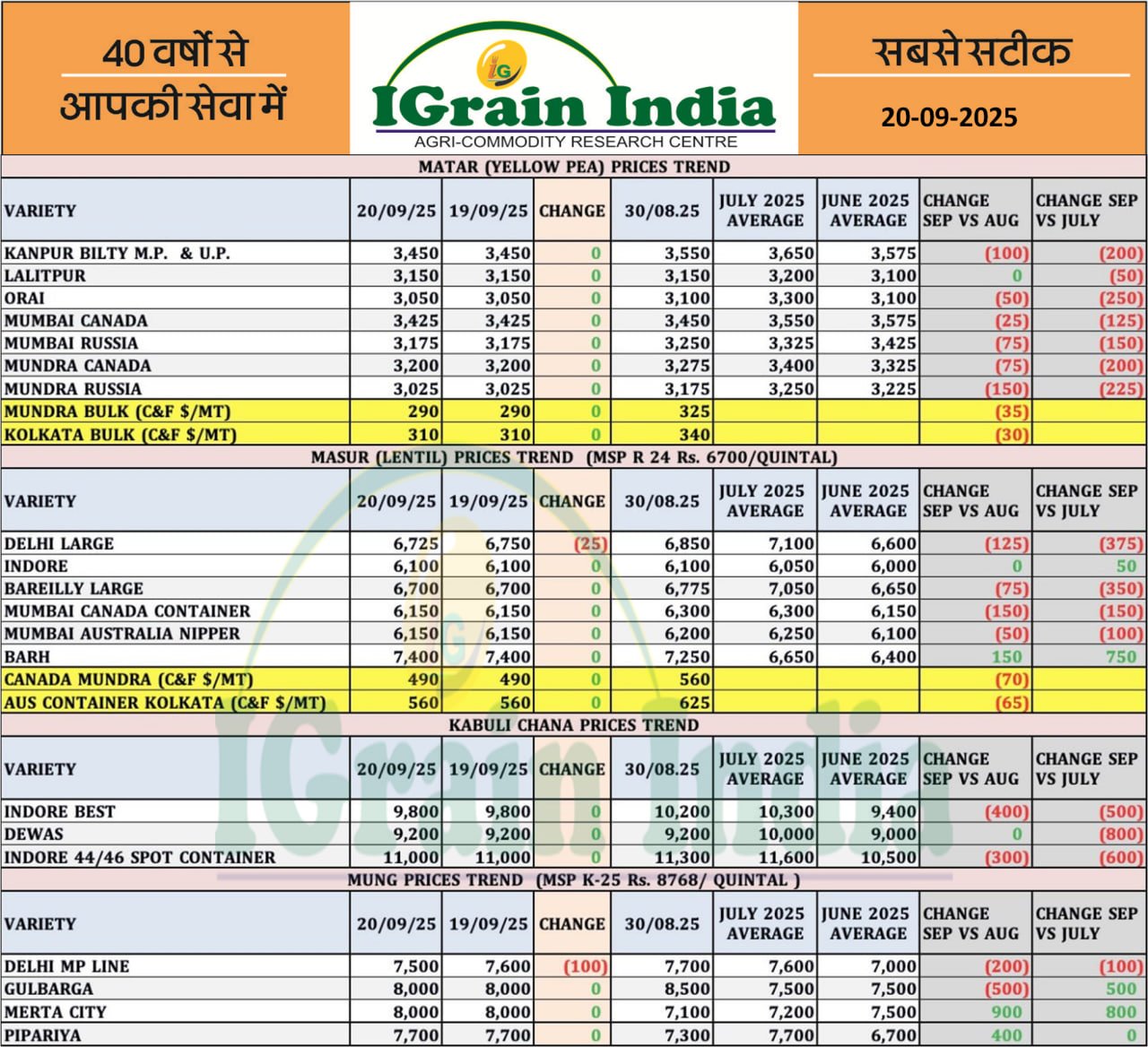 PULSES PRICE TREND