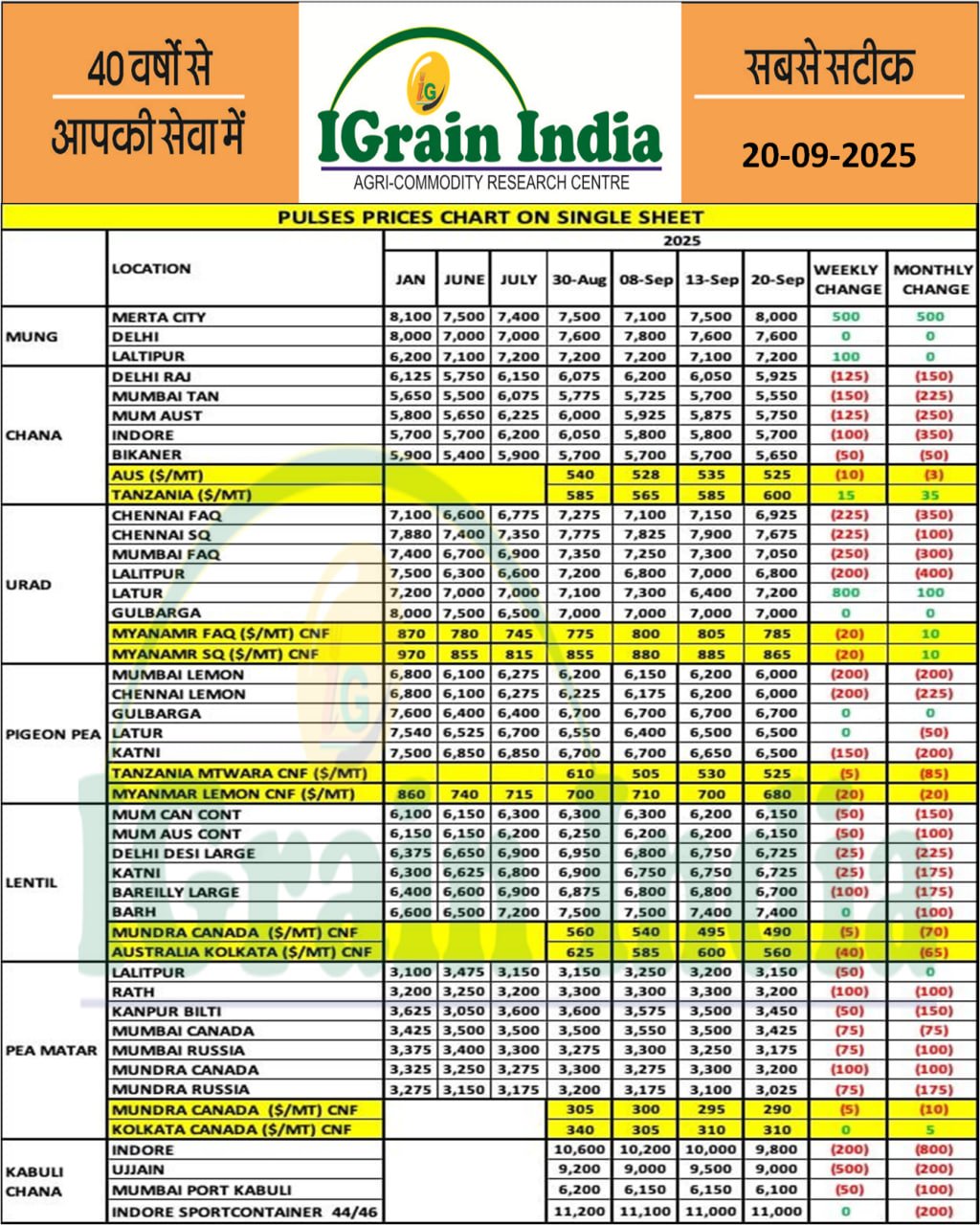 PULSES PRICE CHART