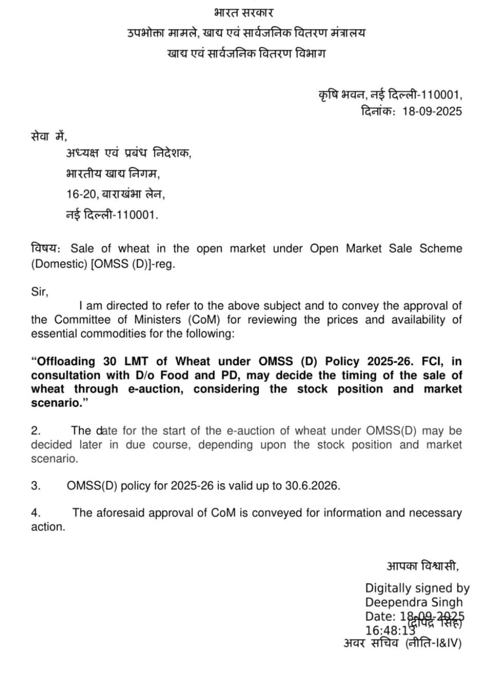 आई -ग्रेन इंडिया की खबर पर लगी मोहर। 30 लाख टन गेहूं किया गया OMSS के लिए आवंटित।