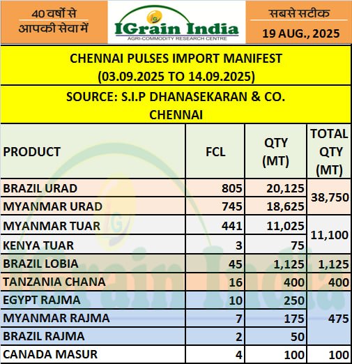 CHENNAI PULSES IMPORT MANIFEST