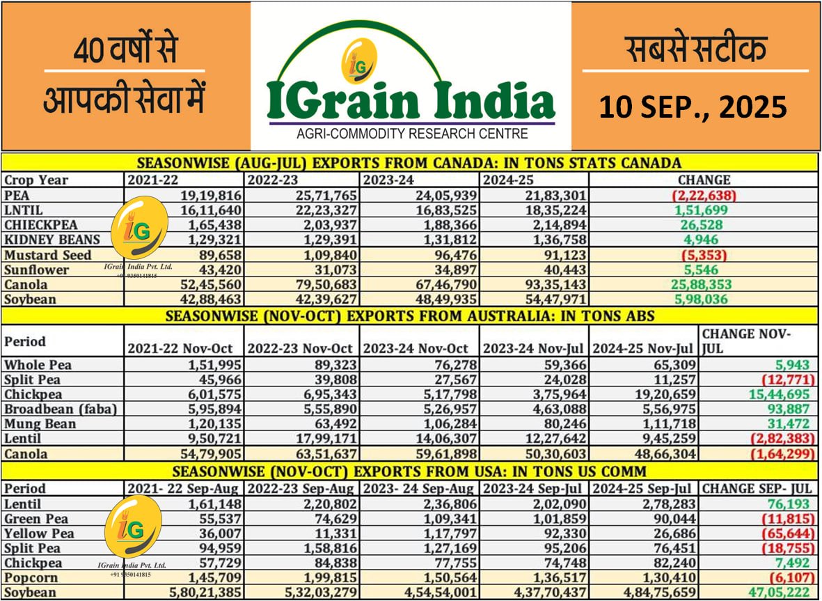 SEASONWISE EXPORT FROM AUSTRALIA, CANADA, USA