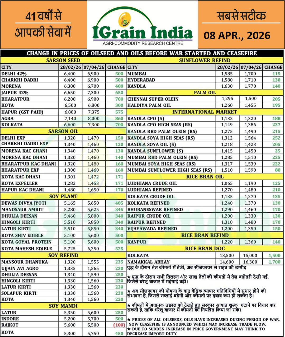 CHANGE IN PRICES OF OILSEED AND OILS BEFORE WAR STARTED AND CEASEFIRE