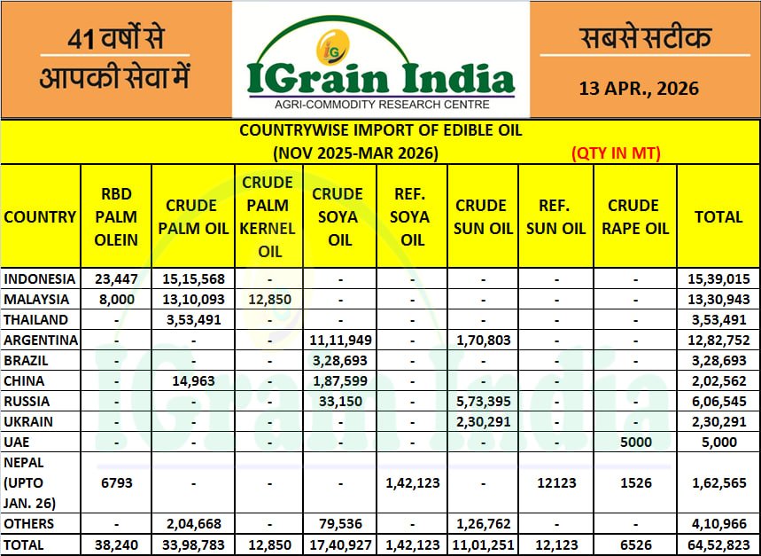 COUNTRYWISE IMPORT OF EDIBLE OIL