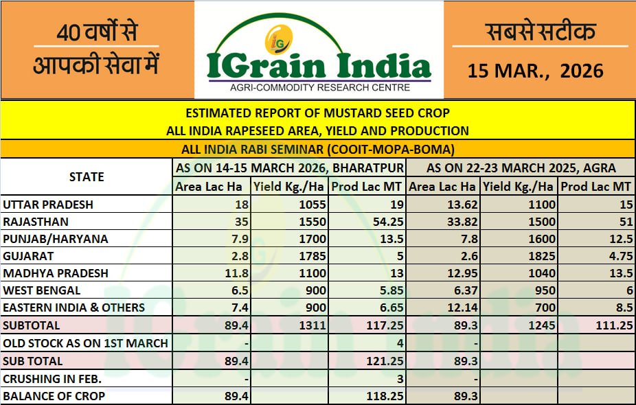 ESTIMATED REPORT OF MUSTARD SEED CROP