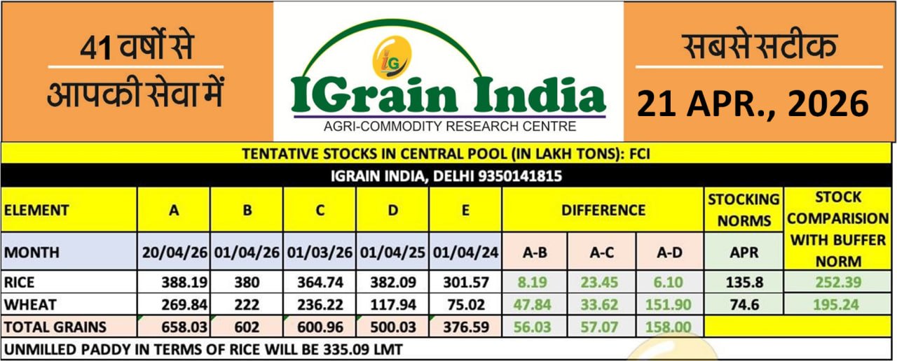 GRAINS TENTATIVE STOCK IN CENTRAL POOL