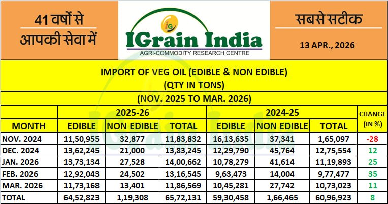 IMPORT OF VEG OIL (EDIBLE & NON EDIBLE)