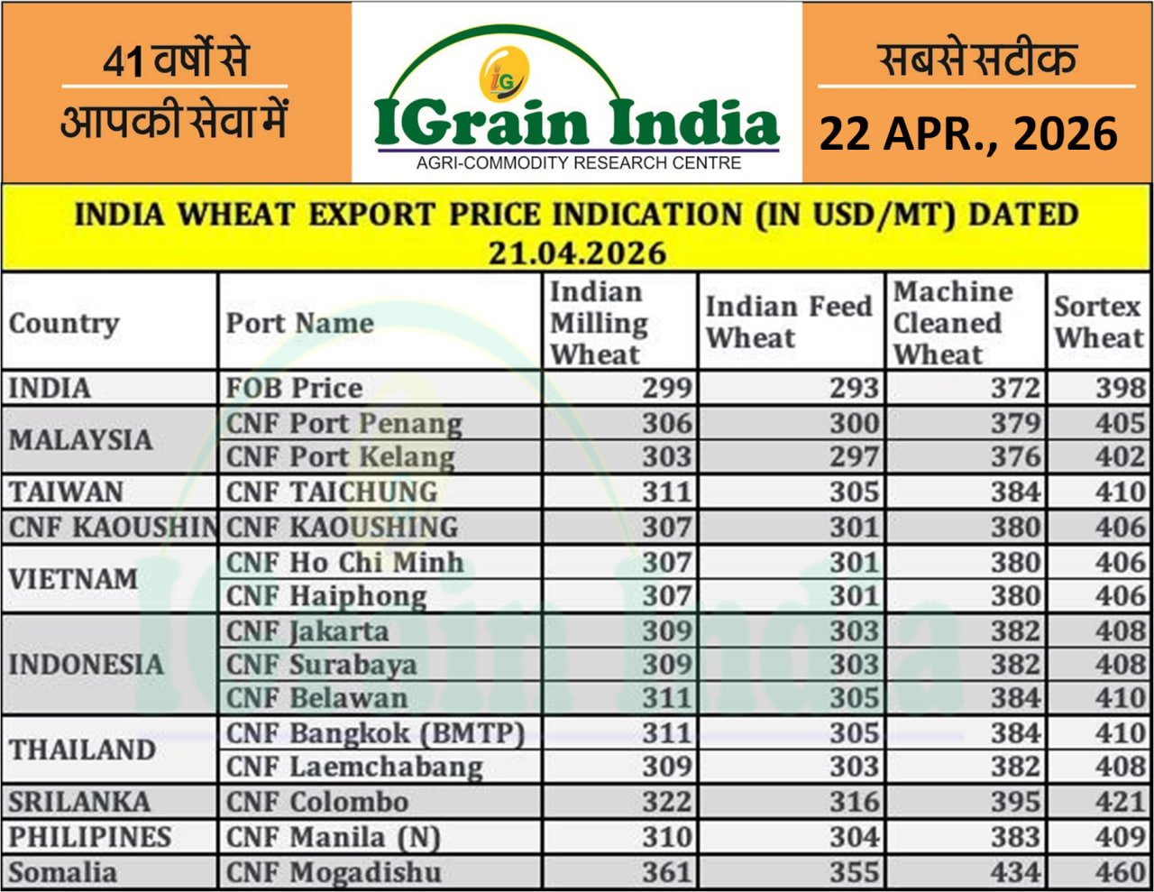 INDIA WHEAT EXPORT PRICE INDICATION