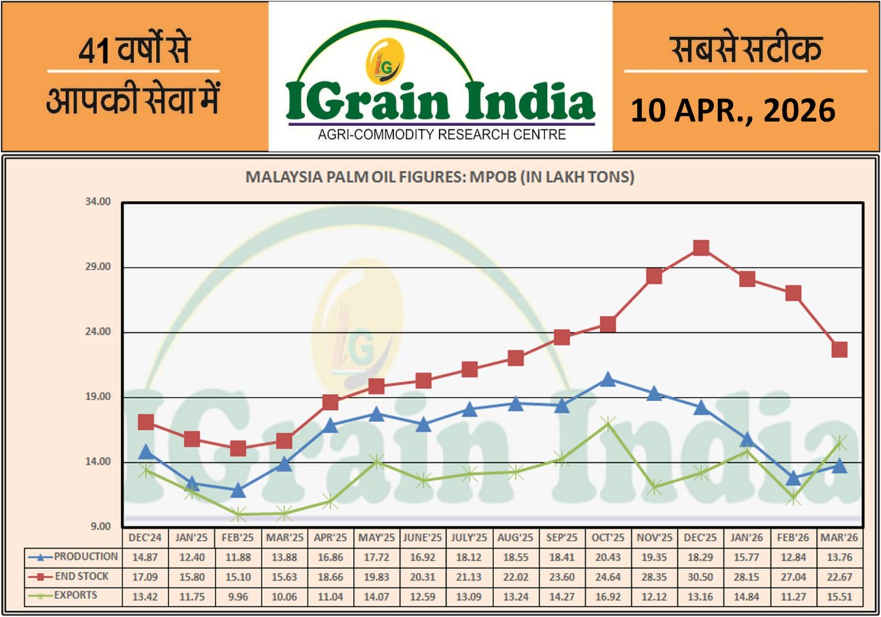 USDA रिपोर्ट (अप्रैल 2026) – इस माह vs पिछले माह (लाख टन में) चावल