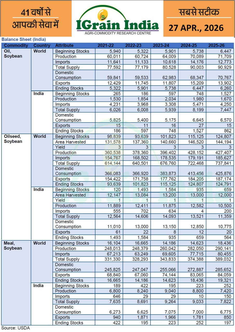 खाद्यान्न के वैश्विक उत्पादन अनुमान में 30 लाख टन की कटौती