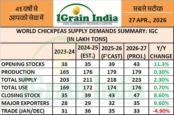 WORLD CHICKPEAS SUPPLY DEMANDS SUMMARY: IGC