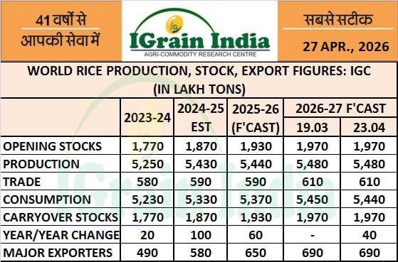 WORLD RICE PRODUCTION, STOCK, EXPORT FIGURES: IGC